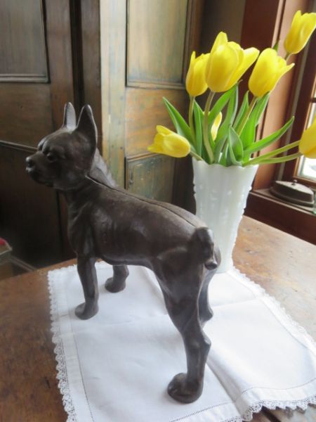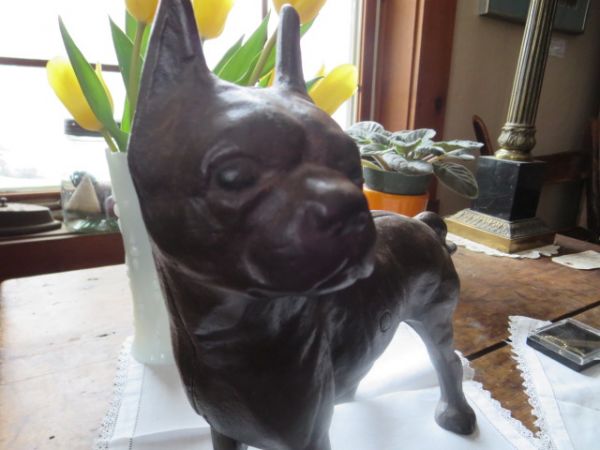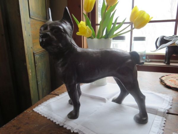 Chien Boston Terrier en fonte , servant d`arrêt de porte.