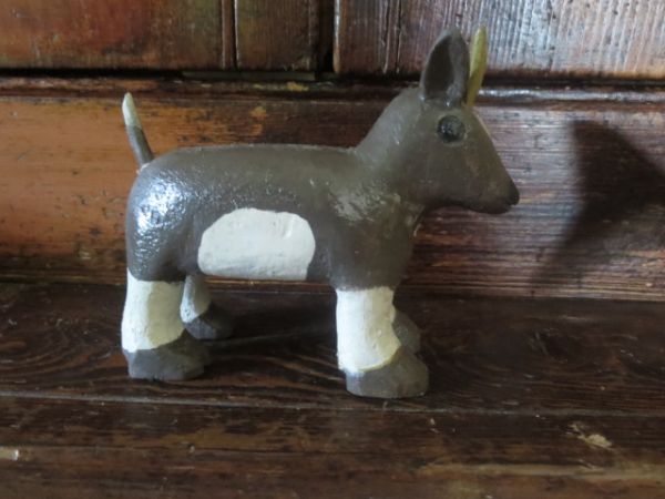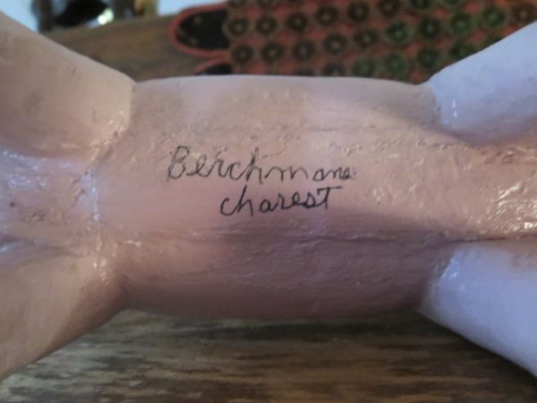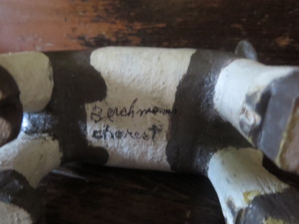 Vache en bois polychrome signée: Berchams Charest.