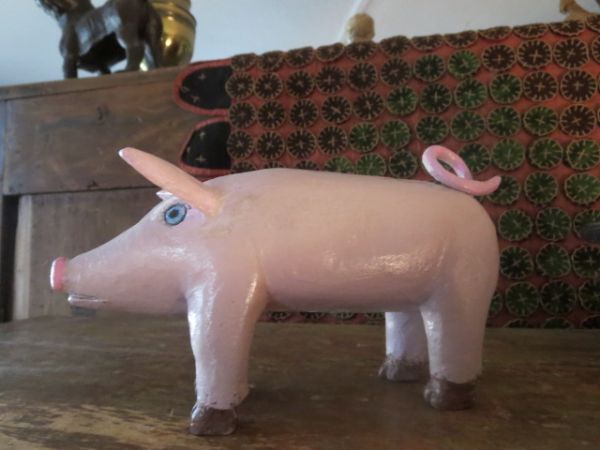 Beau petit cochon rose aux yeux bleus. Longueur: 7 pouces.