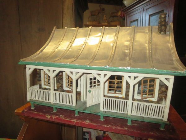 Maison fabriquée de bois, pierre et tôle.