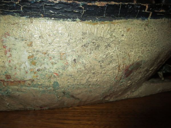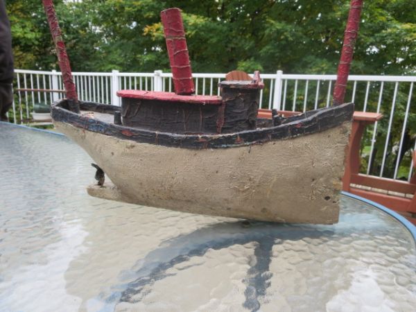 Bateau à vapeur en bois polychrome. Très ancien jouet.